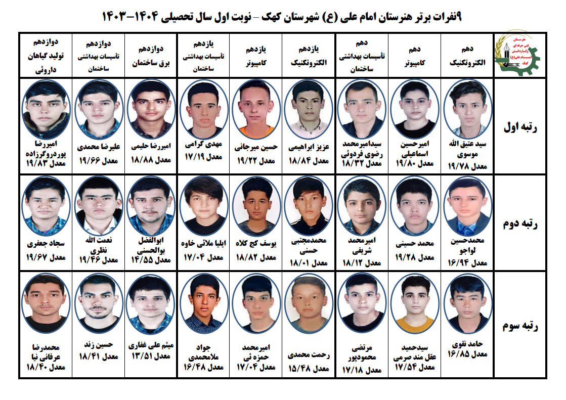 لیست هنرجویان برتر هنرستان فنی و حرفه ای امـام عـلـی(ع)
